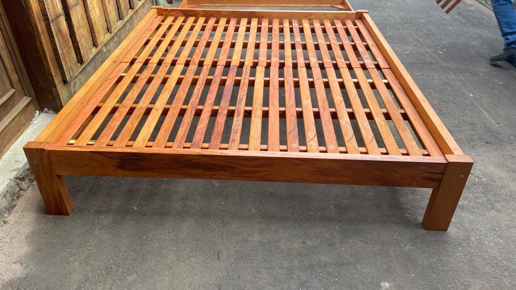 Cama estilo turca em madeira de demolição peroba rosa, medida casal comum.